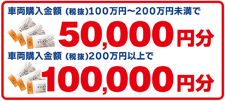 最大10万円分の当店指定ギフトカードをプレゼント!