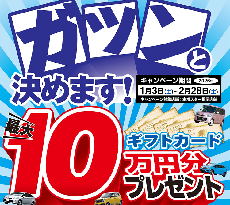 クルマを買っていただいた方に最大10万円分のギフトカードプレゼント – 2026年2月・3月 オートバックスでのクルマ購入がお得!
