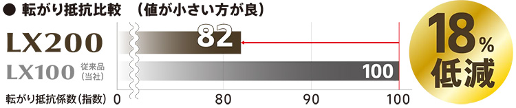 軽量化・新ゴムの採用・最適接地形状の実現により、転がり抵抗を18%低減し低燃費性能を向上。また省資源化に加え、再生資源や再生可能資源を原材料の一部に用いることで地球環境への負荷を低減。