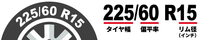 • 注意 – [例] 195R15と195/65R15は別のサイズです。