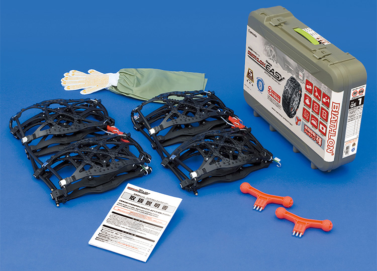 降雪時の寒い場所で、早く・ラクに・確実に装着!当店でも一番売れている非金属タイヤチェーンがCarmate BIATHLON – カーメイト バイアスロンシリーズです。