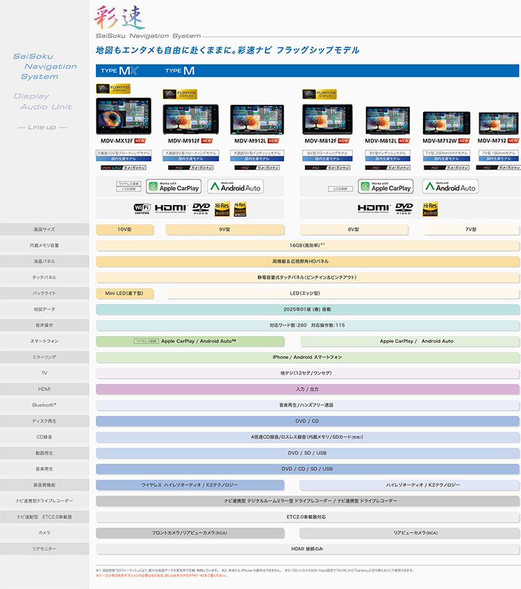 200mmモデル/180mmモデル。つながる機能搭載。7V型スタンダードモデル。