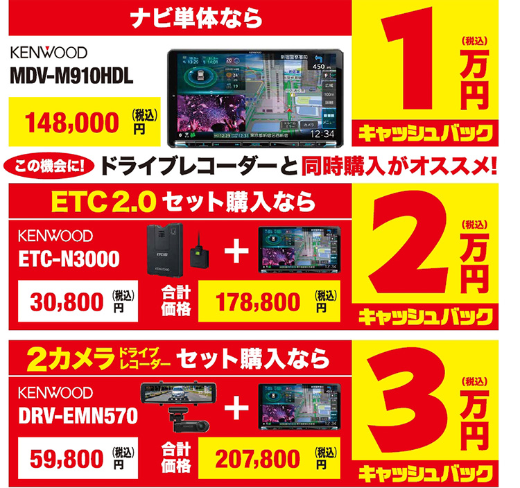 上記の例で合計7万円還元!欲しいオプション品がある方はカーナビとのまとめ買いがおすすめです。